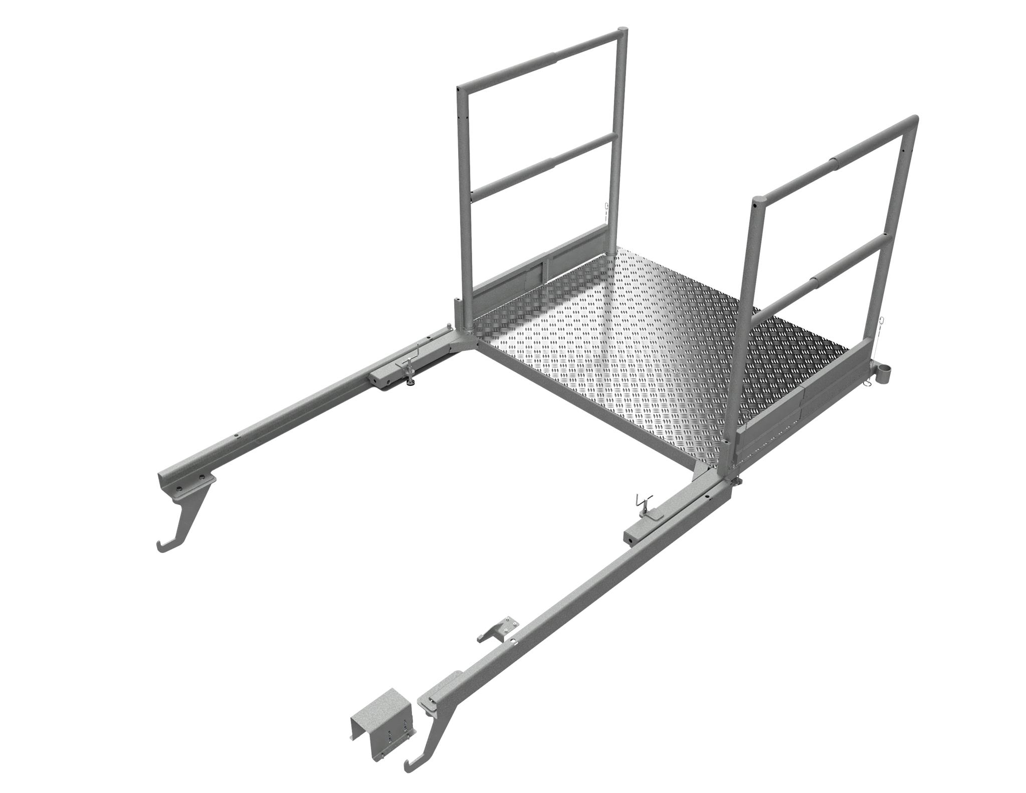 This extension allows for a platform length change of up to 2 meters (1 meter per side) and can be securely attached to both the base of a Scanclimber MCWP platform and side platforms measuring 0.8m or 1.6m.